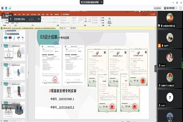 受新冠肺炎疫情影响,本次比赛采取线上汇报评审的方式进行。经过选手们紧张激烈的比赛和评委专家的公正评判,按照项目得分高低排定名次。比赛结束后,系列赛组委会将进行获奖等次评定,并针对优秀项目开展进一步的指导和培育,对需要进行实物制作的项目提供资金和技术支持,积极组织申报第十届全国大学生机械创新设计大赛和第八届中国国际互联网+创新创业大赛,力争取得优异成绩。