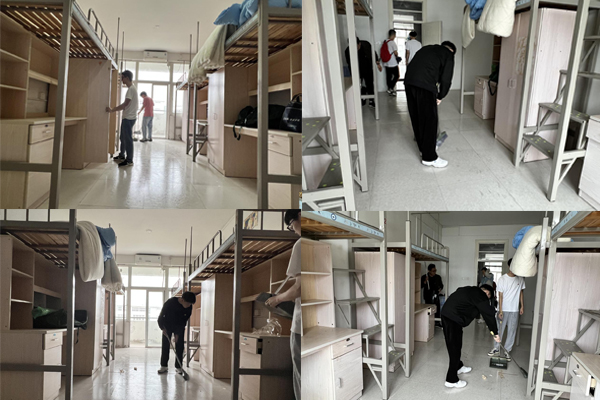 学生党员们根据分工安排,手拿清扫工具,分别前往东一、东二、玉一、西四等寝室楼栋,深入2022级新生宿舍检查房间设备设施,深度保洁宿舍卫生。卫生保洁活动中,学生党员们不怕脏、不怕累,高效协作配合,擦拭床铺、桌椅、衣柜和门框,清洁地板,清理垃圾,不留一处死角,原本覆满灰尘的宿舍焕然一新、整洁有序,静候萌新入住。