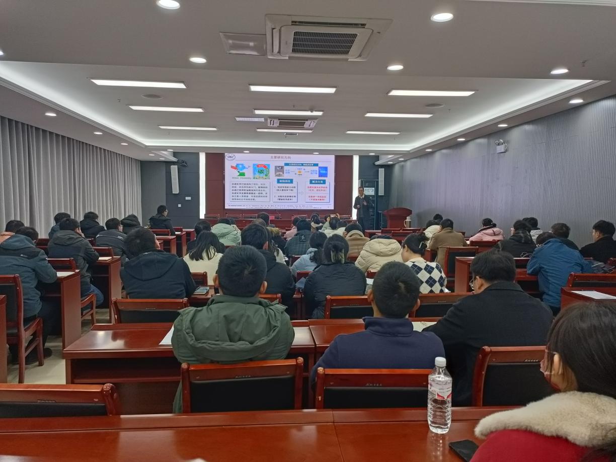 12月6日下午,安徽大学宣俊教授应邀为学院师生做题为可见光驱动卡宾转化:从张力环构建到多组分反应设计的学术报告。学院副院长李子荣(主持工作)、学院教师和部分本科生参加了学术报告会,报告会由李子荣主持。