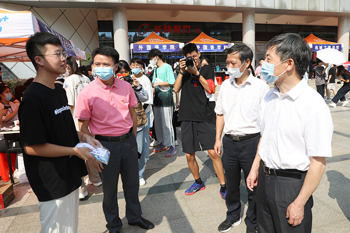 在走访宿舍期间,校领导与同学们进行亲切交谈,详细了解同学们对新的学习生活环境的感受,仔细询问了同学们的生活状况和困难需求,鼓励同学们在大学期间要锻炼独立自主能力,结识新朋友、抓住新机会、过好新生活,希望新生继续努力学习,拓宽视野,在未来学有所为、大展宏图!