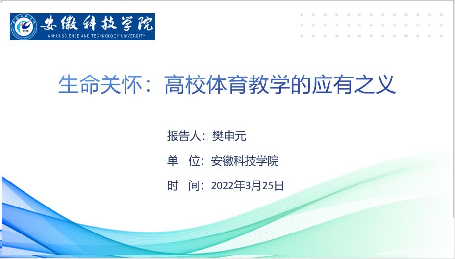 3月25日,开云线上官网_开云(中国)体育教学部樊申元老师参加了第十二届全国体育科学大会线上会议,并在“学校体育创新发展的理论与实践”专题会场作了题为“生命关怀:高校体育教学的应有之义”的专题报告。