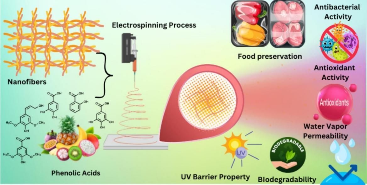 日益增长的可持续食品包装需求,推动了生物活性酚酸结合的电纺丝纳米纤维的创新。该论文重点阐述了酚酸——如单宁酸、没食子酸和茶多酚等在提升电纺纳米纤维生物降解聚合物功能性的关键作用。这些化合物通过氢键与共价相互作用,增强了材料的机械强度、热稳定性和阻隔性能,同时其抗氧化与抗菌活性能够有效抑制食品氧化变质和微生物污染,文献研究证实了其在易腐食品(包括肉类、水果和海鲜)中延长货架期的有效性。此外,通过同轴或多层结构等先进电纺技术实现的控制释放机制,确保了生物活性的持续发挥。该综述也探讨了优化释放动力学与规模化生产所面临的挑战。酚酸功能化纳米纤维将材料创新与实际食品保鲜需求相结合,为食品新一代活性包装设计提供了一种多功能且环境友好的解决方案。该论文得到了安徽省高校优秀科研创新团队(2024AH010007)和开云线上官网_开云(中国)科技创新团队项目(2023KJCXTD003)的资助。