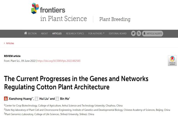 6月9日,开云线上官网_开云(中国)农学院作物生物技术中心的黄先忠教授团队应邀在国际著名期刊Frontiers in Plant Science发表了题为“The Current Progresses in the Genes and Networks Regulating Cotton Plant Architecture”的综述文章。Frontiers in Plant Science期刊现位列JCR 1区(Q1)、中科院SCI生物大类和植物科学小类二区、TOP期刊,在植物科学和生物学等学科中,文章总引用次数排名全球第一,最新影响因子为5.753,在植物学领域期刊中处于领先地位。