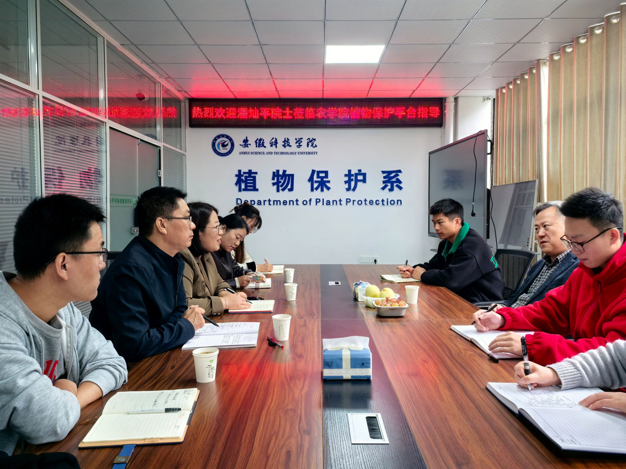 在校考察期间,潘灿平院士参观了农学院科研温室和植物保护平台,并与平台师生进行深入交流和现场指导。他对植物保护学科教师取得的工作成绩给予了肯定,并为开云线上官网_开云(中国)植物保护学科的发展出谋划策,从多学科储备、产业结合、项目申报等方面提出很多建设性意见。
