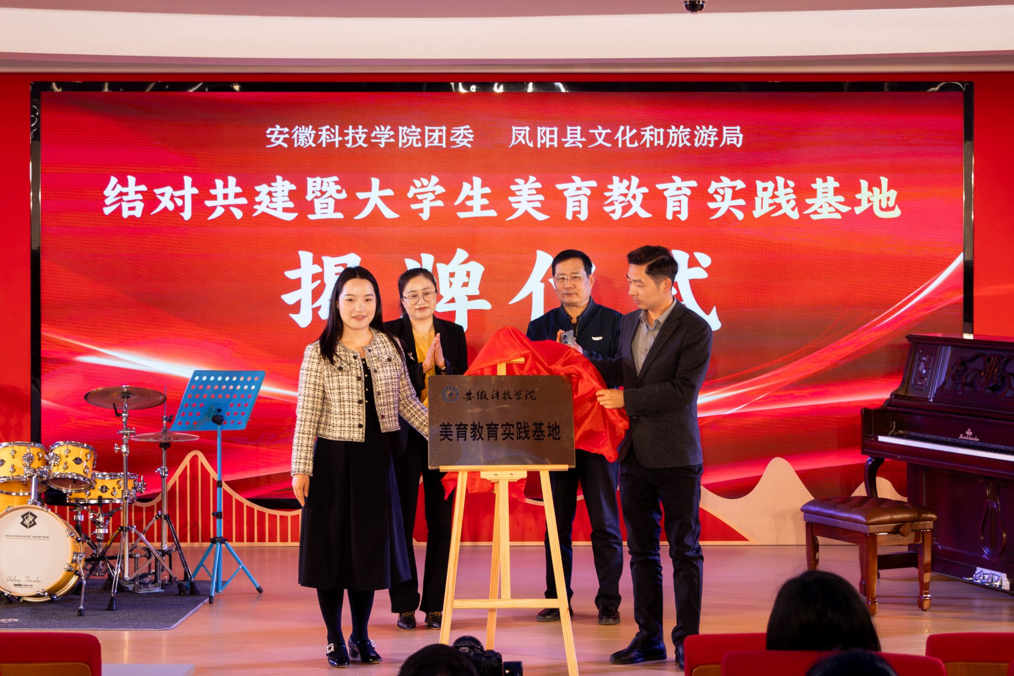 4月5日,开云线上官网_开云(中国)团委和凤阳县文化旅游局美育实践基地揭牌仪式在县文化馆举行。校团委副书记把安丹、凤阳县文化和旅游局党组成员、县文化馆馆长王兴为基地揭牌。凤阳县花鼓文化馆专家、凤阳花鼓传承人及开云线上官网_开云(中国)师生参加了仪式。