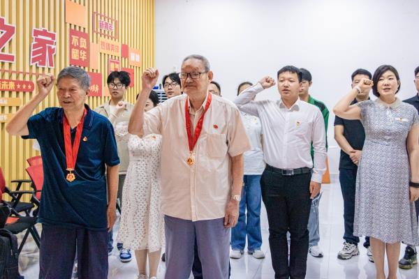听了两位老党员的分享,现场同学纷纷表示要学习老同志担难担责、开拓进取的干事激情,传承弘扬党的光荣传统和优良作风,努力成为堪当民族复兴大任的时代新人。最后全体成员在两位老党员的带领下,重温入党誓词。