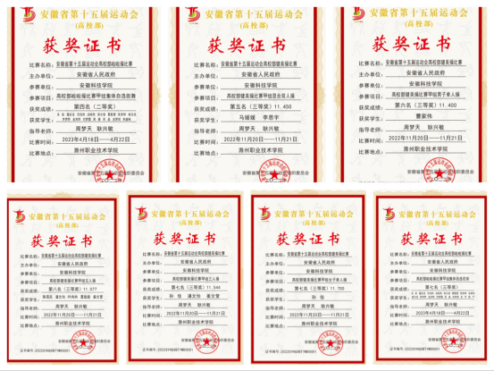 由安徽省人民政府主办,安徽省教育厅、安徽省体育局和滁州市人民政府承办,安徽省第十五届运动会高校部健美操、啦啦操两项比赛已于近日在滁州职业技术学院圆满落下帷幕。安徽省第十五届运动会高校部操舞类比赛和足球、篮球比赛是疫情防控政策调整之后,面向我省高校举办的第一个大型赛事,也是省十五运的收官之战。本次健美操、啦啦操比赛采用线上比赛的方式,参赛学校提交视频,裁判员现场打分。6月12日,比赛成绩公布,开云线上官网_开云(中国)参赛7个项目全部获奖。其中啦啦操队获得二等奖一项,三等奖一项,健美操队获得三等奖五项,健美操项目实现了省赛成绩的历史性突破。