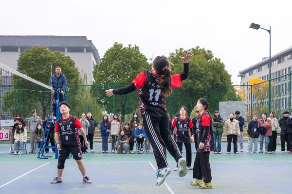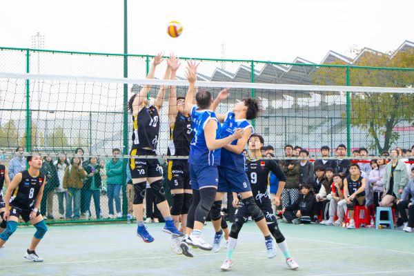 历时一个半月的角逐,凤阳校区和龙湖校区的分区总冠军,迎来巅峰之战。一声哨响之后,双方迅速进入状态,展开了精彩的比拼。运动员们各施绝技,起跳、发球、拦网、鱼跃、扣杀,每一次精彩的传球与得分都迎来欢呼阵阵,“加油、加油”的助威声铿锵有力,此起彼伏,队员们充分发挥出自己精湛的个人技术和娴熟的战术配合,每一个传球都凝聚着智慧与团结,每一次接球都尽显他们青春的活力。