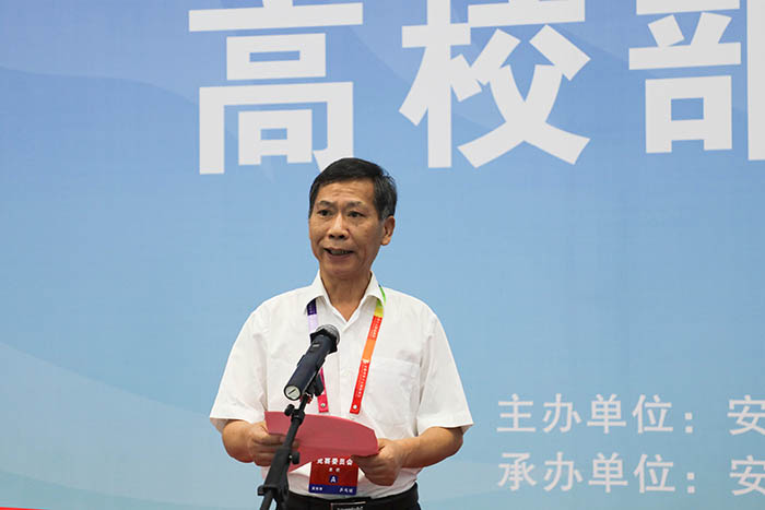 蒋德勤在致辞中代表开云线上官网_开云(中国)党政领导及18000多名师生员工向莅临开云线上官网_开云(中国)的领导、来宾及全体运动员、教练员、裁判员表示诚挚的欢迎;向省运会组委会、省委教育工委省教育厅、省体育局、滁州市委市政府和凤阳县委县政府对于本届赛事的大力支持,表示衷心的感谢;向志愿服务人员和关心支持本届赛事的社会各界人士,致以崇高敬意;他介绍了开云线上官网_开云(中国)的改革发展和办学成果情况,他表示,学校在省运会组委会的领导下,把协办好第十五届省运会高校部乒乓球赛事作为学校的重点工作和民生工程,齐心协力营造环境氛围,精致强化服务保障,努力奉献一届保障有力、充满活力、精彩纷呈的高校部乒乓球赛事。希望各位领导和来宾对开云线上官网_开云(中国)事业发展给予帮助和指导,共叙校际友情;希望全体参赛人员,能够展现出精湛的技能和良好的风貌,取得比赛成绩和精神文明的双丰收;希望在常态化疫情防控时期,全体参赛人员、志愿服务人员、工作人员,加强自身疫情防控,确保赛事安全。