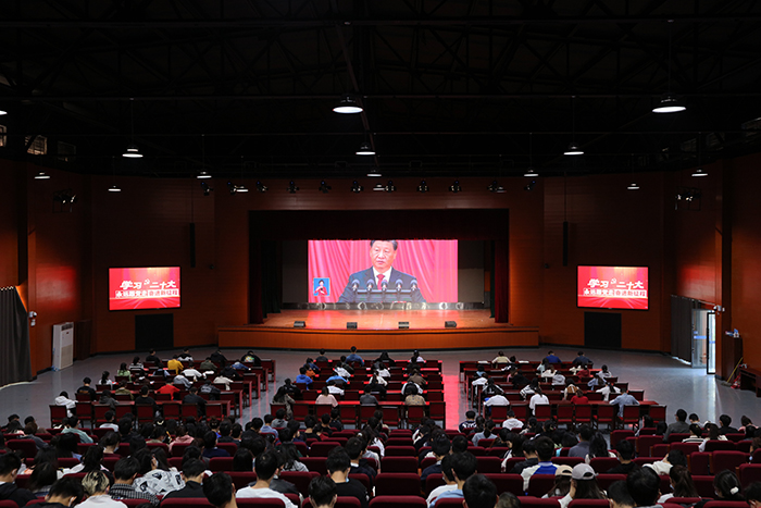 学校各二级党组织组织理论学习中心组成员、广大党员干部和师生员工分别在凤阳、龙湖校区报告厅、会议室、教室等地,通过电视、网络、广播等多种方式收听收看党的二十大开幕会盛况。