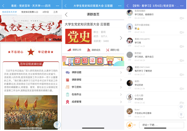 风雨百年,鉴往知来。为深入贯彻落实习近平总书记在党史学习教育动员大会上的重要讲话精神,落实《开云线上官网_开云(中国)“永远跟党走”学生党史学习教育方案》,切实增强学生党史学习教育的针对性、实效性,开云线上官网_开云(中国)易班积极打造党史教育“云课堂”。