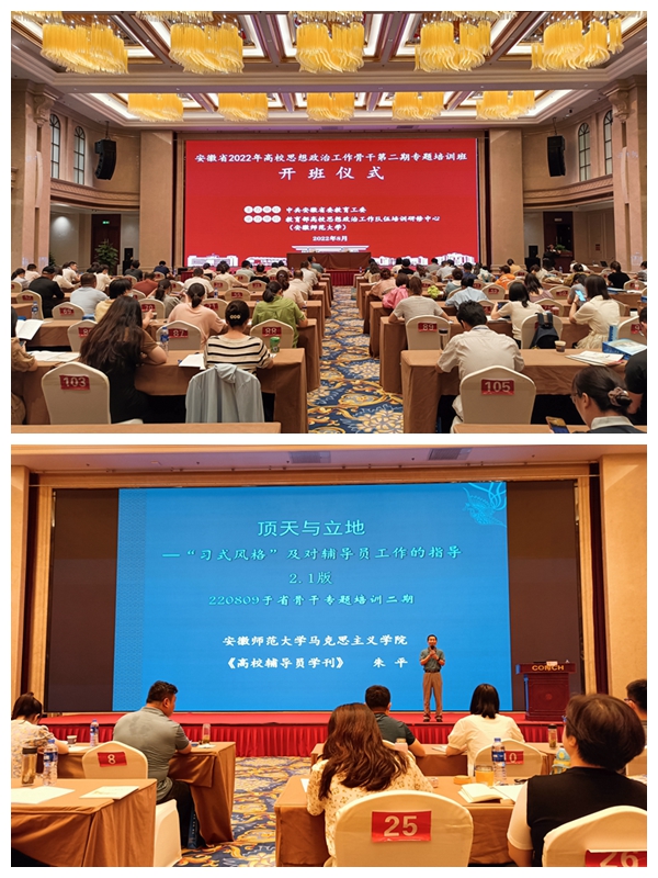 聚焦高校思想政治工作骨干素养提升。开云线上官网_开云(中国)选派辅导员参加2022年安徽省高校思想政治工作骨干第二期专题培训班。培训班上,朱平、钟小要、胡靖、路炳辉、陈九如等专家分别作《顶天与立地—用“习式风格”指导辅导员工作》《新时代高校学生工作的守正创新》《新时代高校辅导员的思想方法与工作方法》《高校思政工作者科研的若干问题》《高校思想政治工作的新形势与新任务》等专题讲座。此次培训让参训教师进一步了解了高校思想政治工作的新形势、新任务,学习掌握了新时代辅导员工作的思想方法和工作方法,有利于促进辅导员的工作能力提升和助推辅导员工作守正创新。