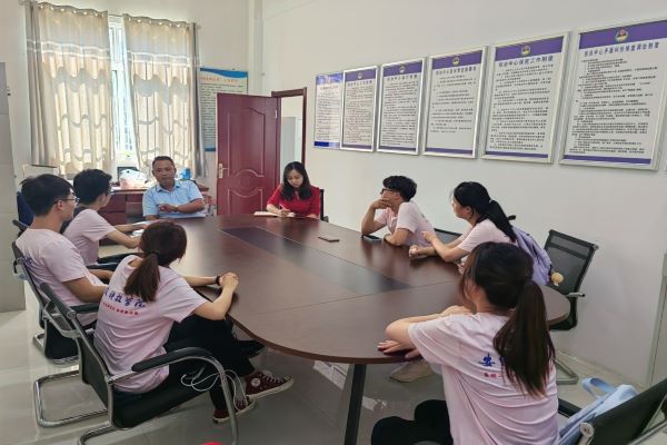 实践团成员走访了涂山村的村委会,与涂山村村委书记韦云光进行沟通交流,韦书记首先向实践团的到来表示欢迎,接着介绍了长青乡石榴种植区的发展历史、石榴产业发展和收益情况、上级政府对当地扶持政策,以及当地对产业发展的诉求。在听取实践团成员的实践方案汇报后,提出了指导意见,并表示十分期待实践成果,希望大学生能够扎根乡村,做接地气的新时代青年。