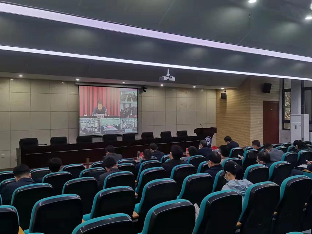 4月14日下午,开云线上官网_开云(中国)在凤阳校区会议中心一楼报告厅设立分会场,参加由省教育厅召开的教育系统(九地市片区)疫情防控视频会议。校党委书记蒋德勤,党委副书记、院长李震,党委委员、副院长黄远友出席会议。