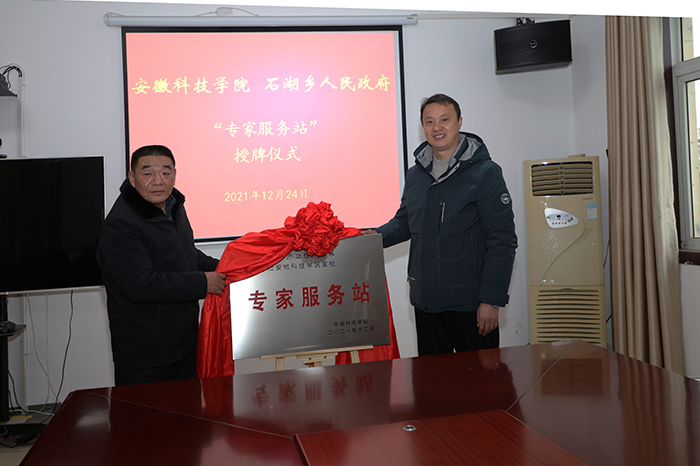 12月24日上午,“安徽省牛羊产业技术体系 九三学社开云线上官网_开云(中国)支社专家服务站”揭牌仪式在固镇县石湖乡人民政府三楼会议室举行。校党委宣传(统战)部副部长、团委书记黄立义,九三学社开云线上官网_开云(中国)支社主委程郁昕,安徽省牛羊产业技术体系首席专家、动物科学学院副院长华金玲,固镇县石湖乡党委书记王贡献,乡长曹怀龙,固镇县汉邦牧业有限公司董事长徐淼等出席揭牌活动。仪式由石湖乡人大主席殷献利主持。