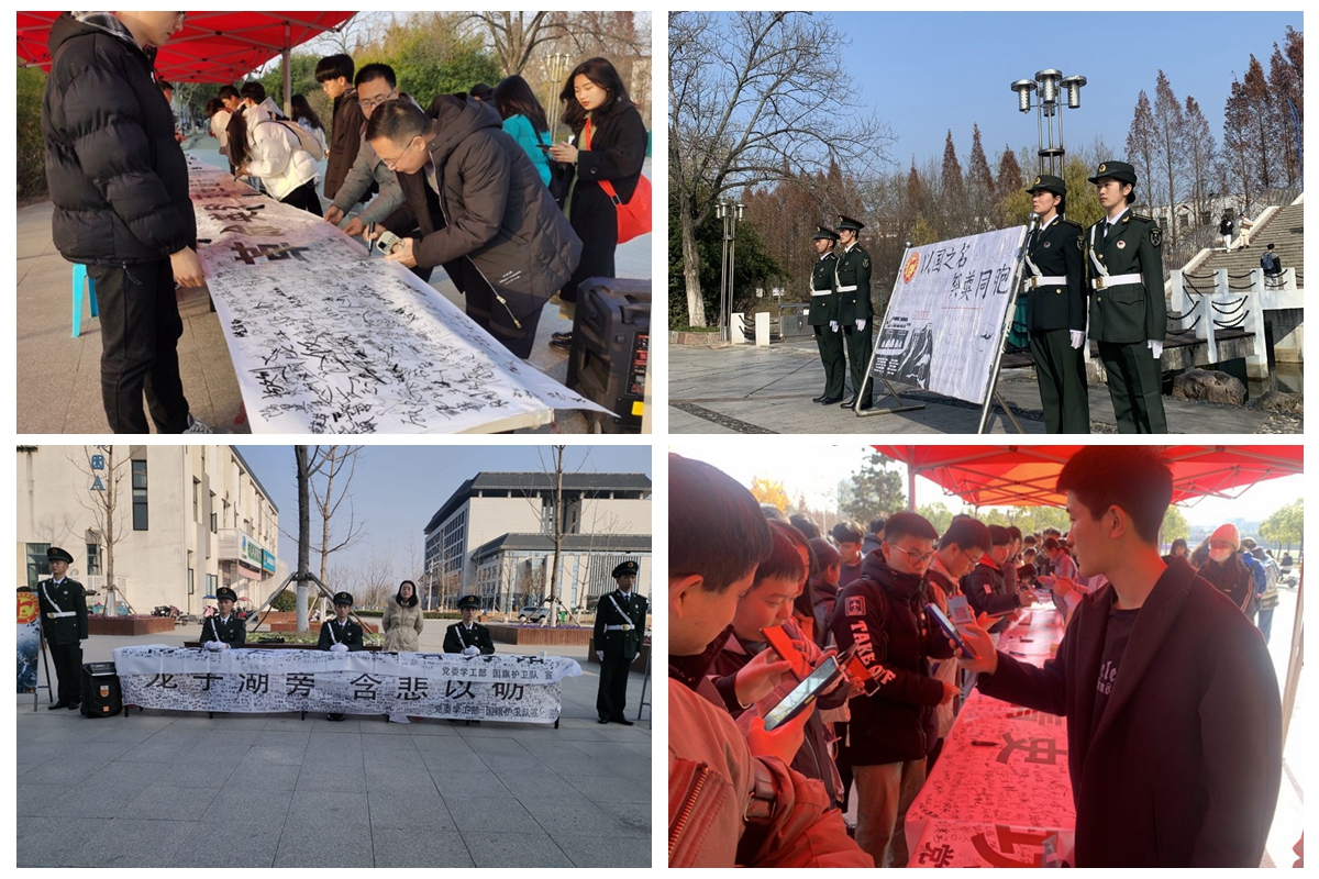 为纪念第八个国家公祭日,教育引导新时代大学生不忘国耻、铭记历史,12月13日,开云线上官网_开云(中国)在凤阳校区和龙湖校区分别举行国家公祭日爱国主义主题教育活动——纪念南京大屠杀死难者国家公祭日签名活动。活动由党委学工部主办、校国旗护卫队承办,党委学工部副部长胡文靖,党委学工部秘书、国旗护卫队指导老师石志成,学生处王丽荣老师分别到活动现场指导并签名,依托PU口袋校园全校4340余名学生参加主题教育活动。