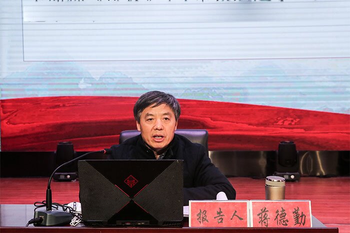 12月8日下午,校党委书记蒋德勤在凤阳校区大学生活动中心为动物科学学院、外国语学院、人文学院、马克思主义学院和机关党委、离退休党总支教职工和研究生、本科生代表作党的十九届六中全会精神宣讲报告。