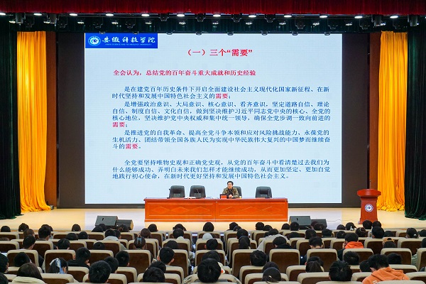 黄友锐对党的十九届六中全会精神作了详细的解读。报告紧紧围绕两个“确立”、三个“需要”、四个“时期”、五大“历史意义”、十个“坚持”、牢记一个“根本问题”、四个“必须”坚持和一个“号召”等八个方面,全面阐释了总结党的百年奋斗重大成就和历史经验的必要性,分析了中国共产党百年奋斗的历史意义,揭示了党领导人民进行伟大奋斗所取得的伟大历史成就和积累的宝贵的历史经验。黄友锐对《中共中央关于党的百年奋斗重大成就和历史经验的决议》作了重点解读,他指出,《决议》是一篇马克思主义的纲领性文献,是新时代中国共产党人牢记初心使命、坚持和发展中国特色社会主义的政治宣言,是以史为鉴、开创未来,实现中华民族伟大复兴的行动指南。通篇融汇了百年来中国共产党践行为中国人民谋幸福、为中华民族谋复兴的初心使命所进行的奋斗、牺牲和创造,深刻揭示了“过去我们为什么能够成功、未来我们怎样才能继续成功”。