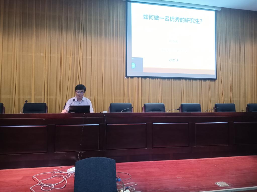 陆春松结合自己的求学经历、科研工作实际,从学生选择读研的原因出发,深入分析了研究生入学之初可能出现的各种问题与面临的困境,提出针对性解决方案。鼓励学生抓住入学之初的时间机遇,以勤奋为导向,从时间投入、独立思考、持之以恒三个维度,引导学生正确面对顺境和逆境、克服畏难情绪,树立积极健康的求学态度。希望学生在研究生学习阶段紧随导师的悉心指导、把握学校相关政策,树立学术理想,以谦虚、务实、严谨的态度,坚定信念信心,一步一个脚印迈步在科研道路上。做到以最大的努力跳出思维定式,独立思考;以开放的心态面对未知世界,勇于尝试;以坚韧的品格面对顺境逆境,持之以恒。向着自己既定的人生目标和发展方向,书写精彩的人生故事。