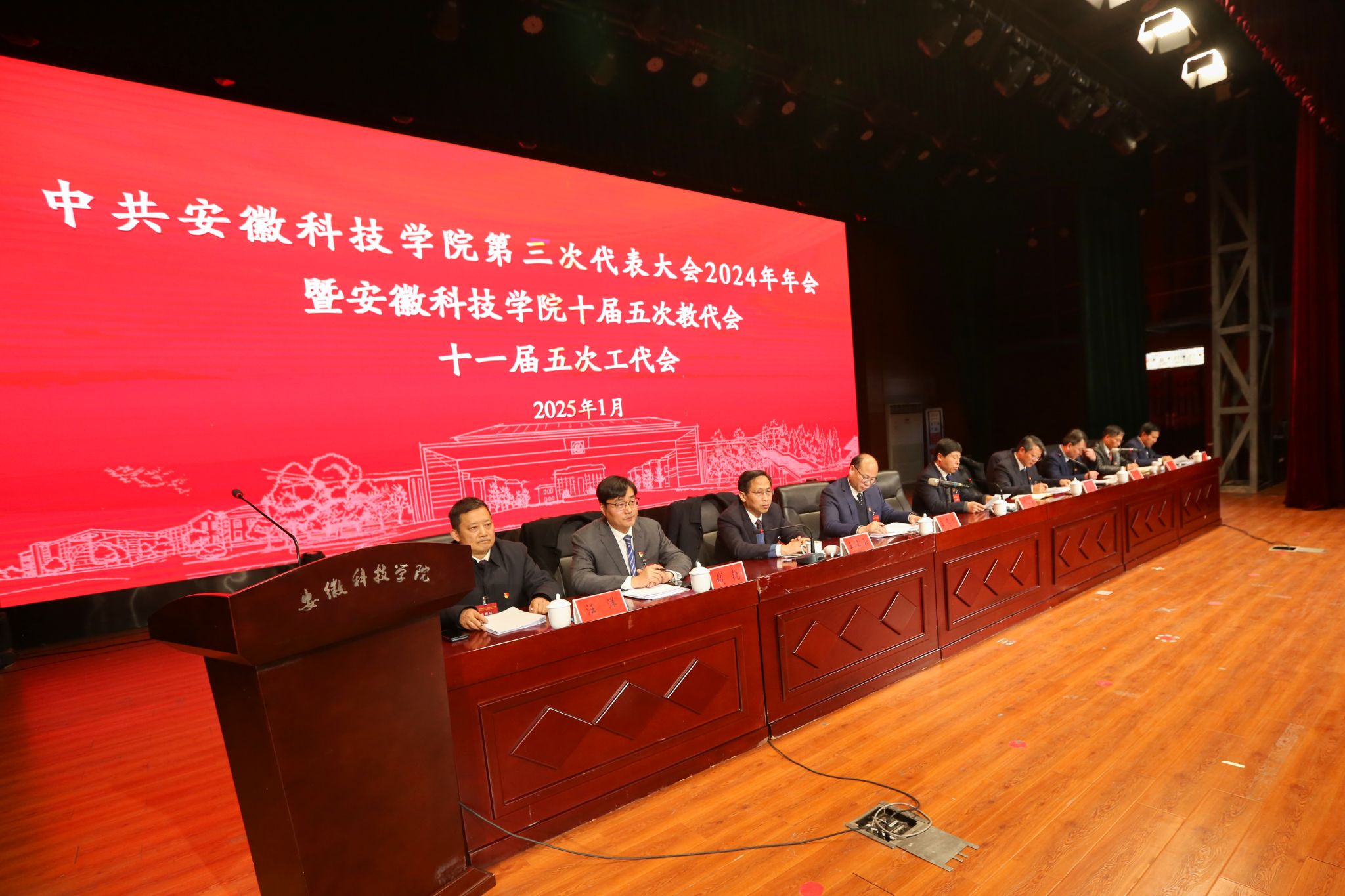 大会第一次全体会议由赵伟峰主持。大会表决通过了会议议程(草案)。李升和代表学校党委、行政作题为“聚力改革攻坚 提升内涵质量 努力开创一流应用型大学建设新局面”的《党政工作报告》。报告全面总结回顾2024年工作,报告指出,2024年学校坚持以习近平新时代中国特色社会主义思想为指导,深入学习贯彻党的二十大和二十届二中、三中全会精神,学习贯彻全国教育大会精神和习近平总书记考察安徽重要讲话精神,学习贯彻省委十一届七次、八次、九次全会精神,团结带领全校党员干部和师生员工,顺利完成年度工作任务,党的政治建设不断加强,基层组织建设成效显著,思想政治工作扎实有力,全面从严治党纵深推进,省委巡视整改扎实开展,学科专业建设深入推进,育人育才能力全面提升,科技创新工作成果丰硕,人才队伍支撑更加坚实,综合保障条件持续改善,党建和事业发展取得新成就。报告强调,2025年学校将坚持以习近平新时代中国特色社会主义思想为指导,贯彻落实上级决策部署,在学校党委的坚强领导下,紧紧依靠全校党员干部和师生员工,把责任扛在肩上,把使命放在心上,聚力改革攻坚,提升内涵质量,努力开创一流应用型大学建设新局面,为中国式现代化美好安徽建设作出新的更大贡献。报告从十二个方面对2025年的重点工作进行了安排。