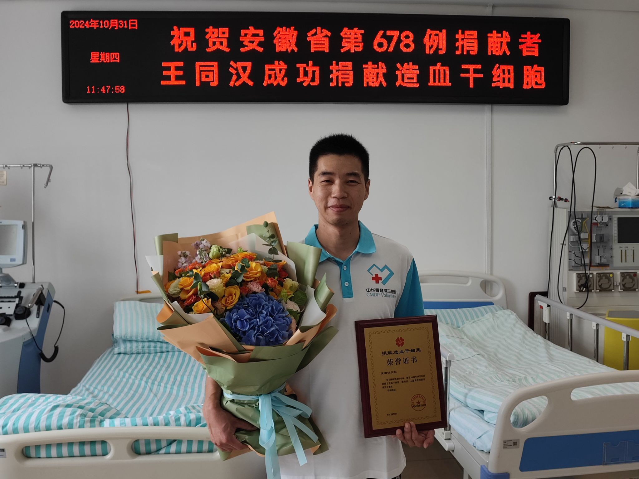 王同汉积极参与无偿献血和捐献造血干细胞的行为,是他对公益事业和社会责任的最好诠释,更是学校致力于志愿服务、宣传志愿精神的生动体现。长期以来学校大力支持学生积极参与志愿服务活动,倡导“奉献、友爱、互助、进步”的志愿精神,着力培养学生的社会责任感和公民意识。(特约通讯员:马晓辉 摄影:徐梦珍 审核:张春雨 胡文靖 编辑:李锦)