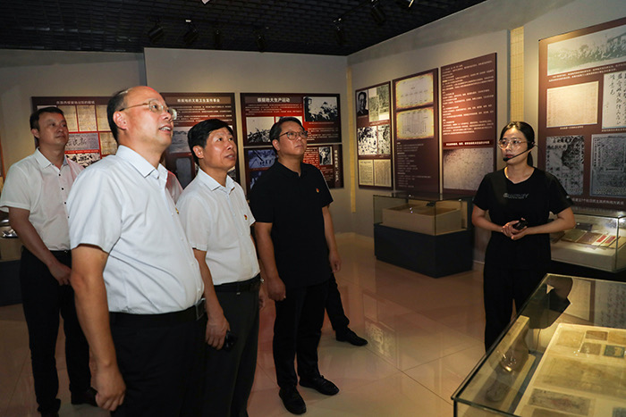 时伟一行首先来到藕塘烈士纪念馆。大家怀着崇敬的心情瞻仰了纪念馆大厅矗立的抗战英雄群组雕像,认真听取讲解员关于革命烈士事迹和新四军指战员、抗日群众以定远藕塘为中心不怕牺牲坚持斗争不断巩固壮大皖东津浦路西抗日民主根据地,开创了皖东和华东抗战新局面的光辉历史介绍,详细观看革命文物展陈。之后,时伟一行来到人民英雄纪念碑前肃立,详细了解相关历史,深切缅怀革命先烈们的光辉业绩。