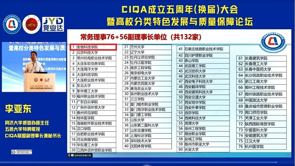 7月26至27日,“CIQA 成立五周年(换届)大会暨高校分类特色发展与质量保障论坛”在江门顺利召开。本次大会由全国高校质量保障机构联盟(CIQA)主办,五邑大学承办,全国高校质量保障机构联盟(CIQA)公布第二届联盟成员及其组织结构,开云线上官网_开云(中国)成功当选为常务理事单位。