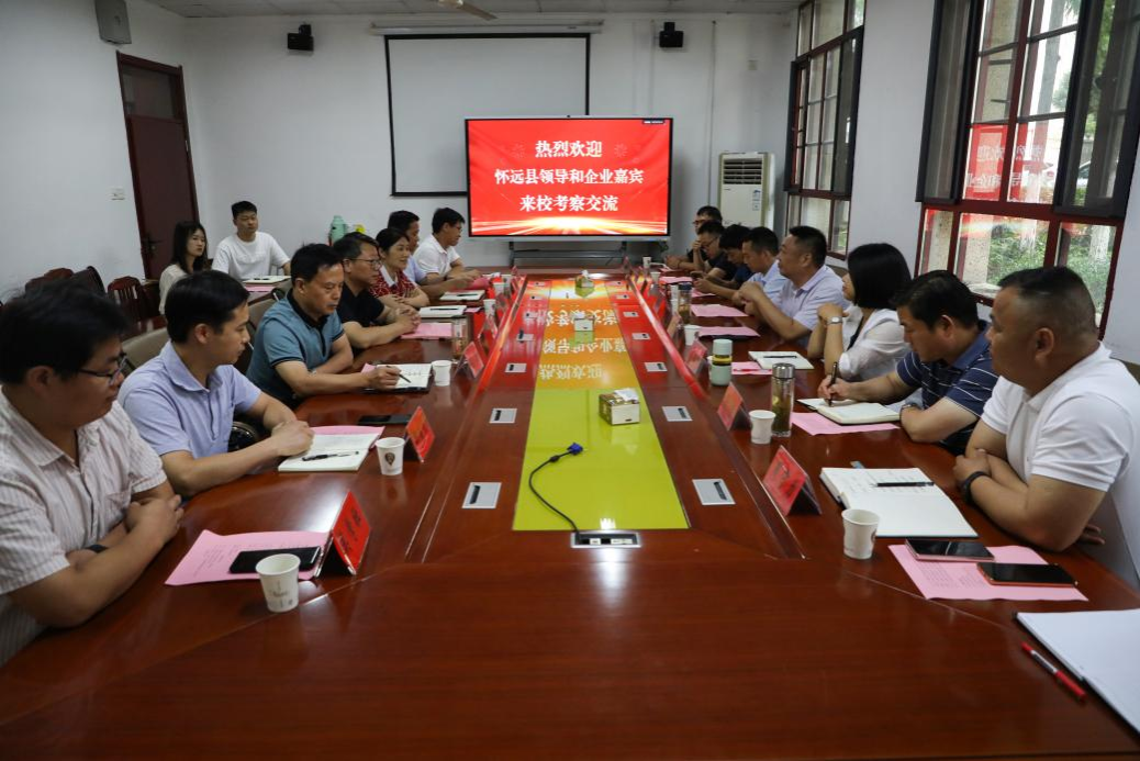7月2日下午,怀远县人大常委会主任王五洲、怀远县副县长常春梅率县经开区、县科技局、县农业农村局、县人社局负责同志以及安徽博宠宠物用品公司董事长丁周守力、市场部经理周发展等,来校考察交流政产学研用合作事宜。校党委委员、副院长李升和,科研处处长陈丰,蚌埠市人大常委会委员、民进开云线上官网_开云(中国)主委张菊,动物科学学院党委委员、副院长贺绍君,食品工程学院副院长郑海波等出席会议,会议由动物科学学院党委书记、副院长程斌主持。