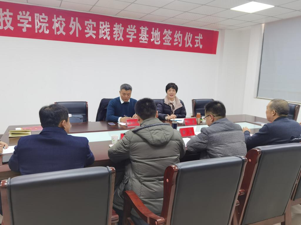 俞浩与陈小峰分别代表校企双方签订了校外实践教学基地协议书,并为校外实践教学基地揭牌。詹学文与蔡薇分别授予对方实践教学基地和产学研合作基地牌匾。