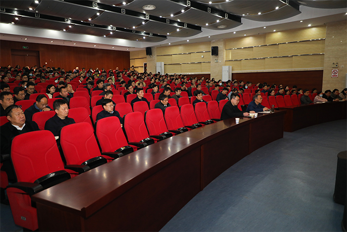 党委书记时伟作审核评估线上评估迎评动员报告。他指出,迎评工作已进入关键的决胜阶段,全校各单位、各部门要统一思想、坚定信心、凝心聚力、务实笃行,全力以赴做好迎评各项工作。就做好迎评工作,他提出四点要求,一要提高站位,统一思想,以高度的责任感和使命感认真做好审核评估工作。全体教职员工务必高度重视、深刻理解审核评估背景、目的和意义,把审核评估作为学校提质量、强管理、促发展、树形象的重要契机,不断深化教学改革、推进教学建设、强化教学管理。二要提振精神,坚定信心,以坚强的信念和必胜的决心做好审核评估工作。各单位、各部门要充分调动全体人员积极性,形成凝聚力,展现战斗力,以良好的精神状态、充分的工作准备,确保高质量完成审核评估线上评估专家组各项考察工作。三要强化责任,勇于担当,以务实的作风和勇于攻坚的精神做好审核评估工作。各单位、各部门主要领导要认真履行迎评工作第一责任,做到知责于心、担责于身、履责于行,要主动思考、科学部署、细化落实,把任务和责任落实到人,增强迎评工作的思想自觉和行动自觉。四要顾全大局,协同作战,以更高的标准和严格的要求做好审核评估工作。全校上下要牢固树立一盘棋的思想,上下联动、密切协作,齐心协力做好评建工作,用最好的状态、最好的环境、最好的氛围,同题共答,凝聚起迎接审核评估的工作合力。