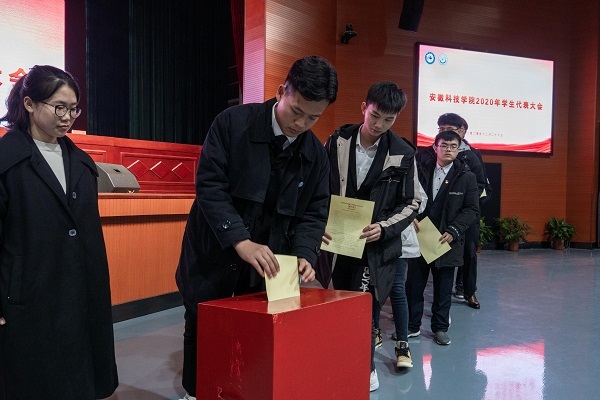 大会选举产生了校第十三届学生委员会委员,王蝶(女)、王露(女)、方临朝、史玉军、朱道广、刘伟(女)、刘名、许心画(女)、许庆威、许佳乐(女)、许恒恺、孙廷(女)、杨祉龙、杨鑫烁、束若雨、张志,陈汉、陈中胜、罗潇云(女)、周文娟(女)、黄世伟,崔帅、鹿洲、程凯、鲍康俊等25位同学当选;大会选举产生学生会主席团,程凯、王露(女)、刘伟(女)、罗潇云(女)、刘名等5位同学当选。在圆满完成各项任务后,学生代表大会在激昂的团歌中胜利闭幕。