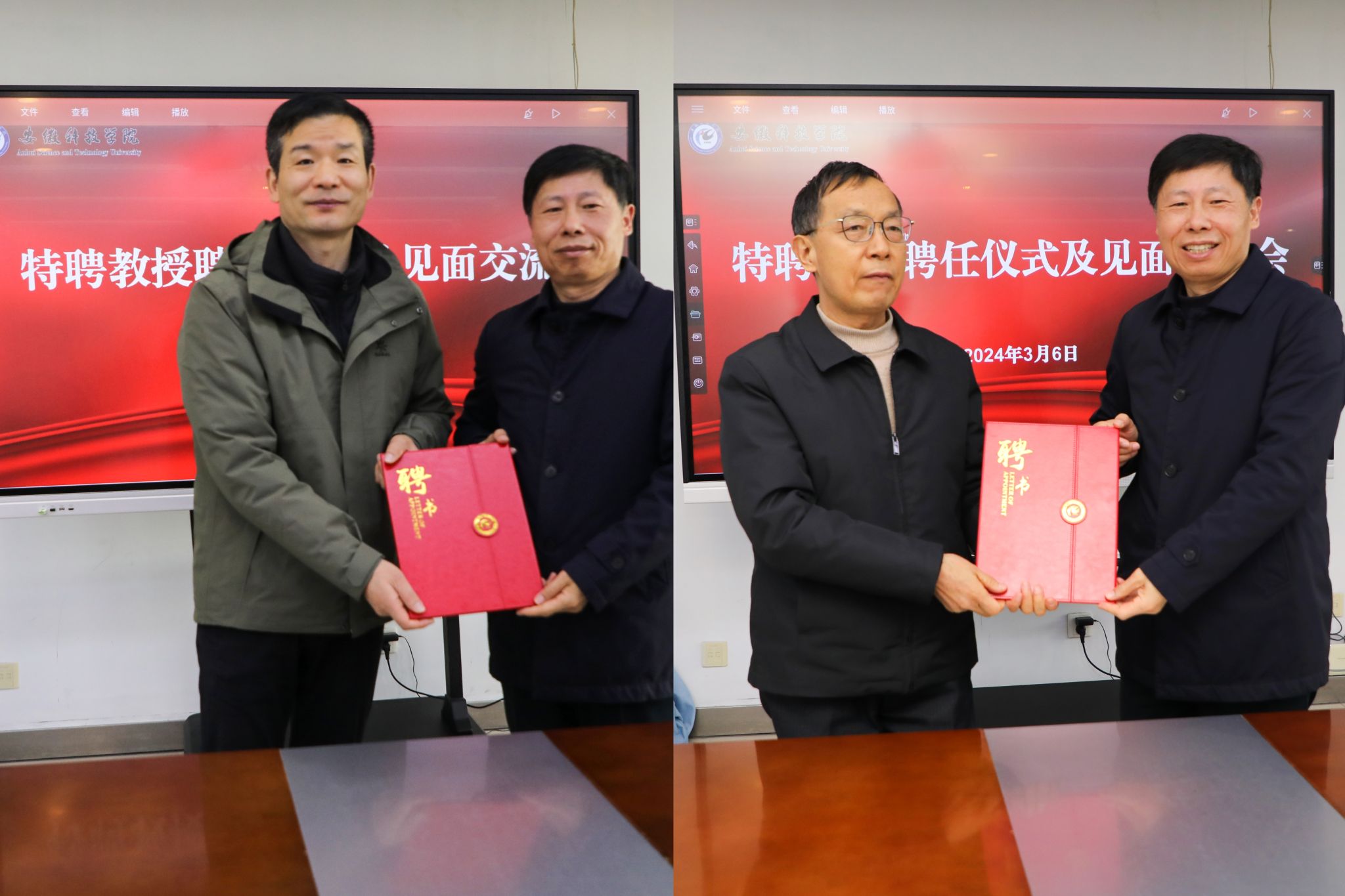 黄远友简要介绍学校基本情况,指出特聘教授是学校师资发展力量的重要组成部分,有利于拓展学院专业发展空间,提升学院科研发展水平,完善师资结构和团队建设,为学校可持续发展提供人才支撑和智力保障。会上,黄远友代表学校与张春晖、王长路两位教授签订了特聘教授聘任协议书。