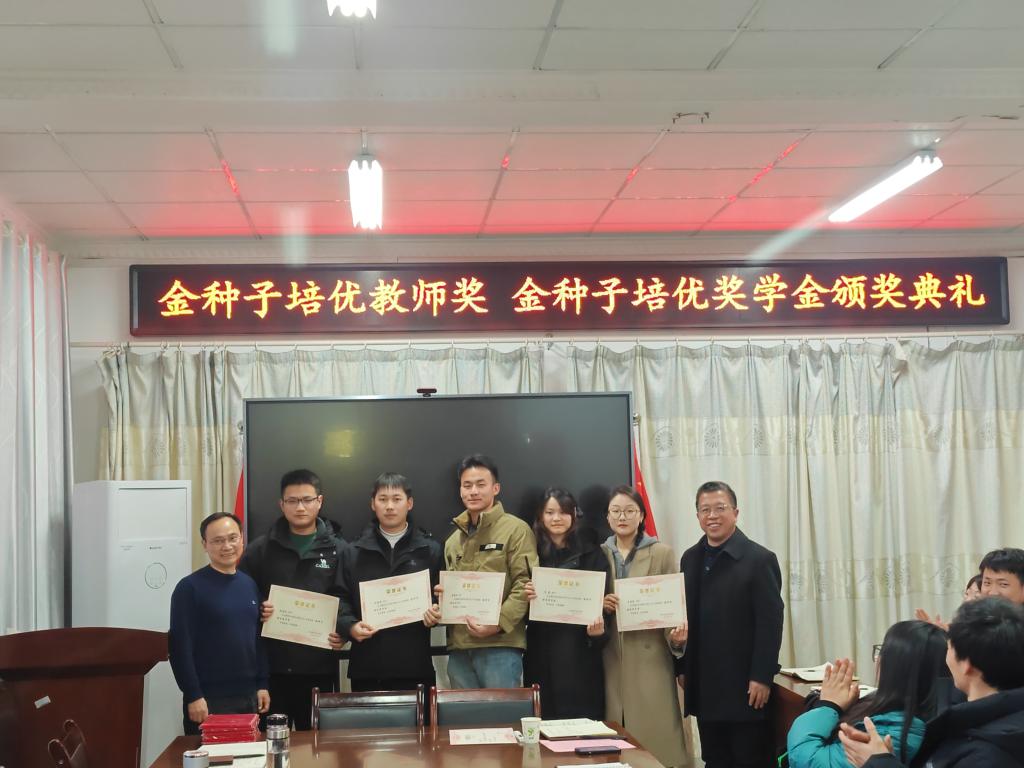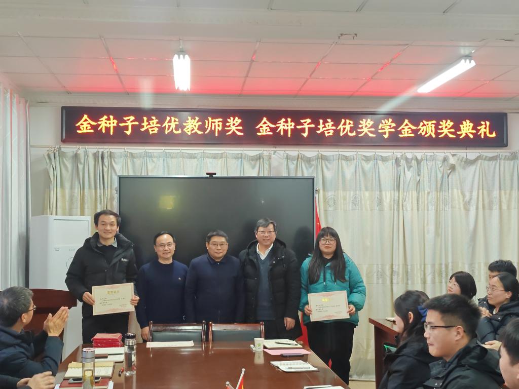 1月11日下午,“金种子培优基金”2023年度“金种子培优奖学金”“金种子培优教师奖”颁奖仪式在农学院会议室隆重举行。校党委委员、副院长李升和,上海景领投资管理有限公司合伙人、基金发起者黄宪先生,二级教授、基金发起者农学院黄先忠老师,农学院党委书记何世潮,副书记张轶辉,副院长舒英杰和李文阳以及教师代表和学生代表出席颁奖仪式。根据《开云线上官网_开云(中国)农学院“金种子培优基金”申报细则》和申报人申请,经“金种子培优基金”评审委员会评审,李瑞宁、艾昊两位青年教师荣获金种子培优教师奖,孙张论、李婷、杜孟祥、杨德坤和王静婷五位农艺与种业专业研究生荣获金种子培优奖学金。颁奖仪式由农学院党委副书记、院长崔广荣主持。