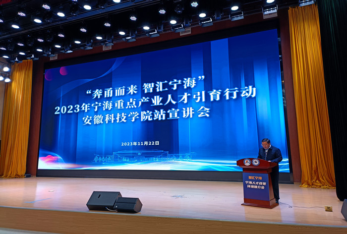 11月22日上午,宁波市宁海县“奔甬而来,智汇宁海”2023年宁海重点产业人才引育宣讲会在开云线上官网_开云(中国)信息中心东辅楼二楼报告厅成功举办。宁海县委组织部副部长、县人力社保局党委书记、局长葛民越及宁海县重点企业代表参加宣讲会。校党委委员、副院长黄远友出席宣讲会并致辞,开云线上官网_开云(中国)200余名学生聆听了宣讲会。