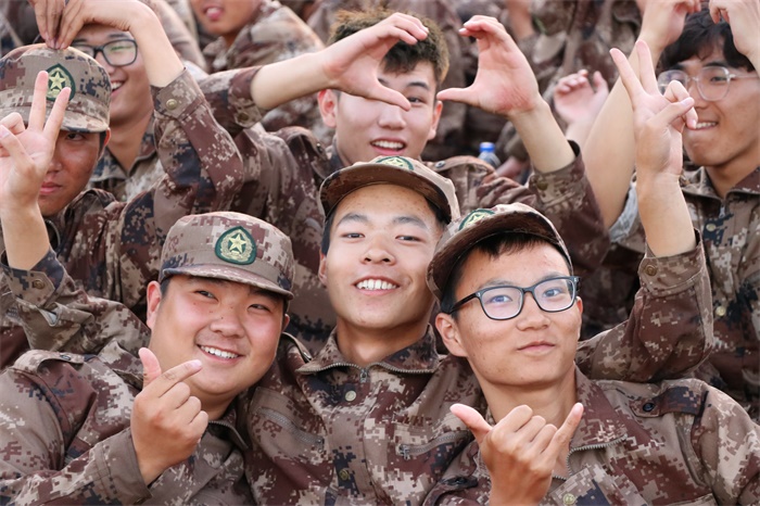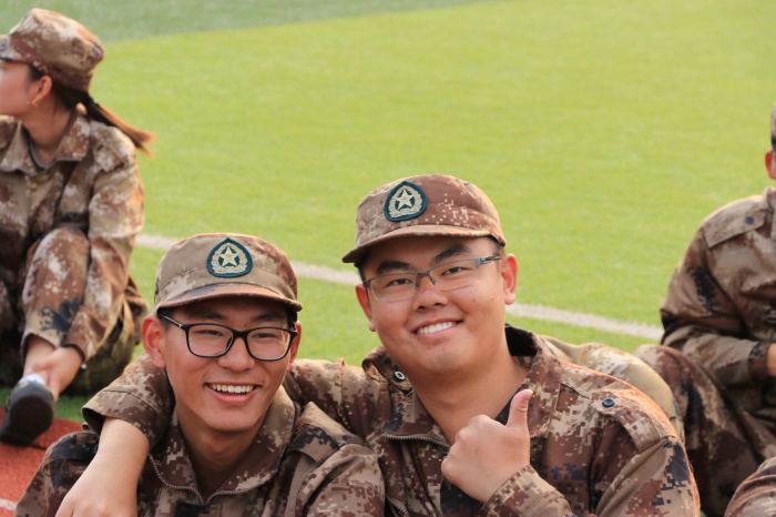 闲暇时的欢笑,让训练的劳累不再繁重。我们谈天说地,我们相互打气。欢声笑语间,彼此的距离不再遥远。灿烂的笑容掩盖了疲倦的面庞,响亮的军歌鼓起了坚持下的勇气。这不是一种简单的快乐和放松,团结与友爱的精神散在里面,隐在其中,潜移默化间传承在心中。