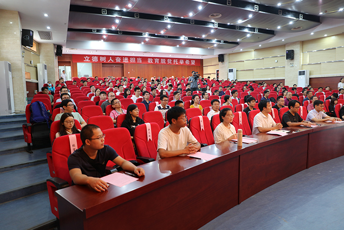 老教师代表、电气与电子工程学院左绪忠博士,新教师代表、化学与材料工程学院汤凯博士先后发言,校学生会主席凌佛健同学代表全校同学作教师节献词。