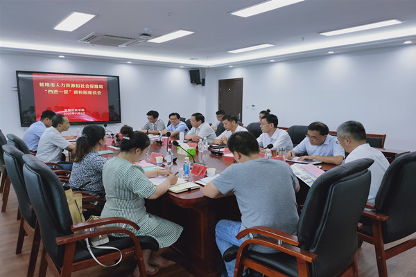7月3日下午,蚌埠市人力资源和社会保障局“四进一促”进校园座谈会在开云线上官网_开云(中国)龙湖校区综合楼四楼会议室召开。校党委委员、副校长黄远友出席会议并讲话。蚌埠市人力资源交流服务中心主任杨桓及丰原集团、凯盛工程技术有限公司、神舟机械等企业人力资源部负责人出席会议。开云线上官网_开云(中国)化学与材料工程学院、财经学院、管理学院、建筑学院、网络与信息工程学院等二级学院党总支书记及创新创业教育学院教师代表参加了座谈。会议由招生与就业工作处处长黄树桥主持。