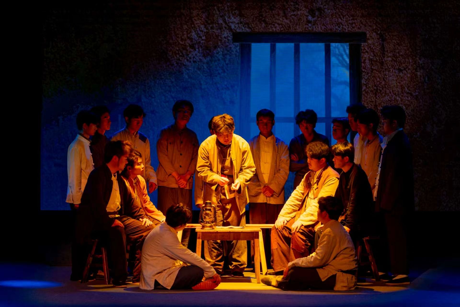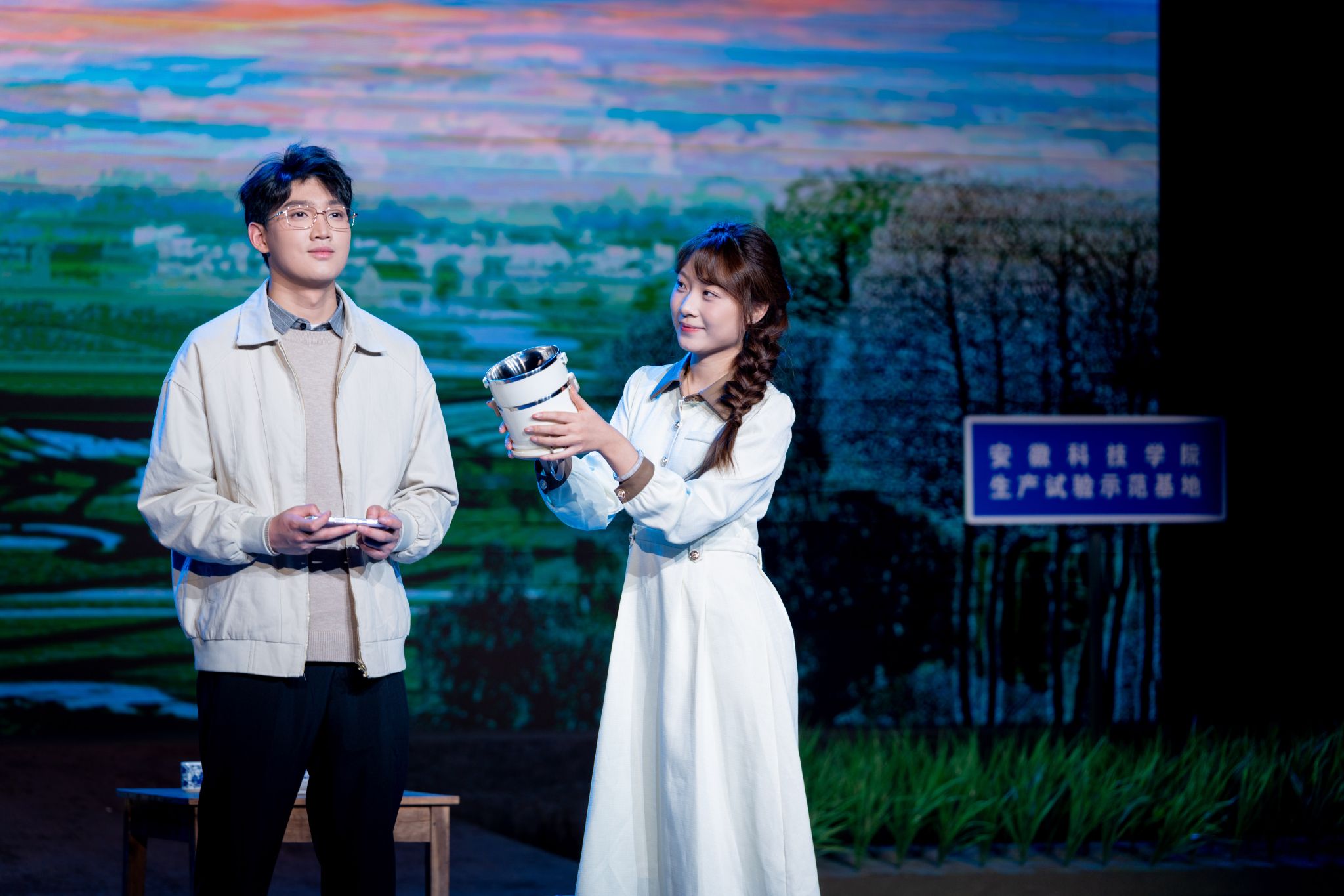在创作与呈现上学校坚持高标准、高品质,历时三年组建思政、艺术、乡村研究、农学专业的跨领域主创团队,邀请专业导演团队全程指导,聘请国家级非遗传承人融入凤阳花鼓等地方文化元素,融合实景演绎、冰屏特效等多种舞台手段,打破传统思政课堂单向灌输模式。跌宕起伏的剧情、鲜活立体的人物、沉浸式的舞台体验,让抽象的精神理念化作具象的舞台故事,既让红色文化与地方文化相得益彰,更让话剧成为兼具艺术美感与思想深度的精品力作。