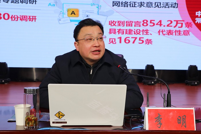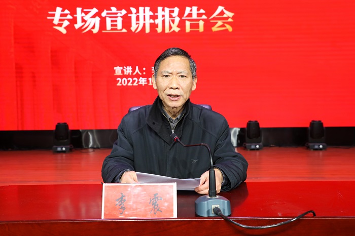报告会上,李明以“全面建设社会主义现代化国家的政治宣言和行动纲领”为题,结合自身学习体会,从深刻领会党的二十大的重大意义、准确把握党的二十大精神实质、学习宣传贯彻党的二十大精神的基本要求三个方面,重点围绕“党的二十大的主题”“过去5年的工作和新时代10年的伟大变革”“马克思主义中国化时代化”“中国式现代化”“全面建设社会主义现代化国家的目标任务”“坚持党的全面领导和全面从严治党”“应对风险挑战”“团结奋斗的时代要求”等深入阐述与系统讲解了党的二十大精神。