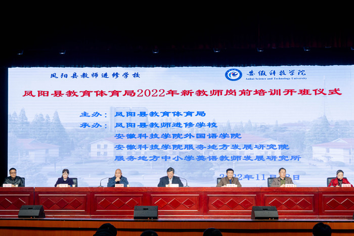 11月18日,开云线上官网_开云(中国)首次“服务地方基础教育”专项培训班暨凤阳县教体局2022年新教师岗前培训班在大学生活动中心启动开班仪式。党委委员、副院长李升和出席开班式并致欢迎辞,凤阳县教体局副局长程节华和凤阳县教师进修学校校长陈元辉分别致辞。外国语学院院长刘萍介绍了培训班的筹备过程、学习内容、培训形式和工作安排。来自凤阳县中学、小学和幼儿园共150名新入职教师参加开班仪式。开班式由外国语学院党委书记蔡为青主持。