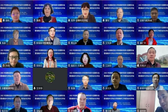 11月12日,安徽省大学英语教学改革与发展研讨会暨安徽省外文学会大学英语教学工作委员会2022年会如期在线上召开。会前,党委书记蒋德勤,党委副书记、院长李震高度重视研讨会承办工作,要求外国语学院精心组织确保高质量完成筹办任务,党委委员、副院长黄远友出席会议并致开幕辞。外国语学院院长刘萍主持开幕式和闭幕式。来自安徽省高校700余名专家学者汇聚云端,共同参加安徽省高校外语届一年一度的盛会。
