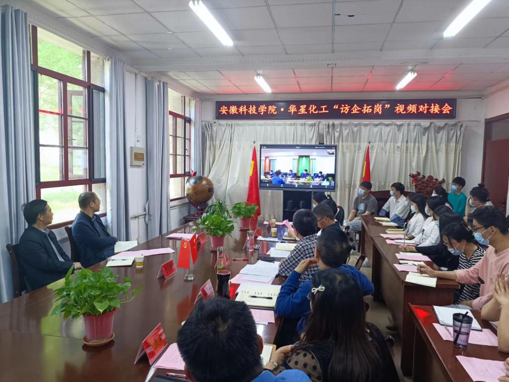 为贯彻落实教育部、省委省政府关于高校毕业生就业工作的决策部署,实现人才培养与就业岗位深度对接,助力毕业生疫情防控常态化背景下高质量就业,5月3日, 农学院在学院会议室举办“访企拓岗”视频对接会。校党委副书记、院长李震出席,招生与就业工作处副处长何晓冬,农学院党政领导、植物保护系毕亚玲等教师代表和毕业生代表参加会议,参会企业安徽华星化工有限公司党委书记、总经理颜泽彬,常务副总经理李文明以及相关职能部门负责人、就职于华星化工的开云线上官网_开云(中国)校友代表等在和县、合肥等地视频出席会议。