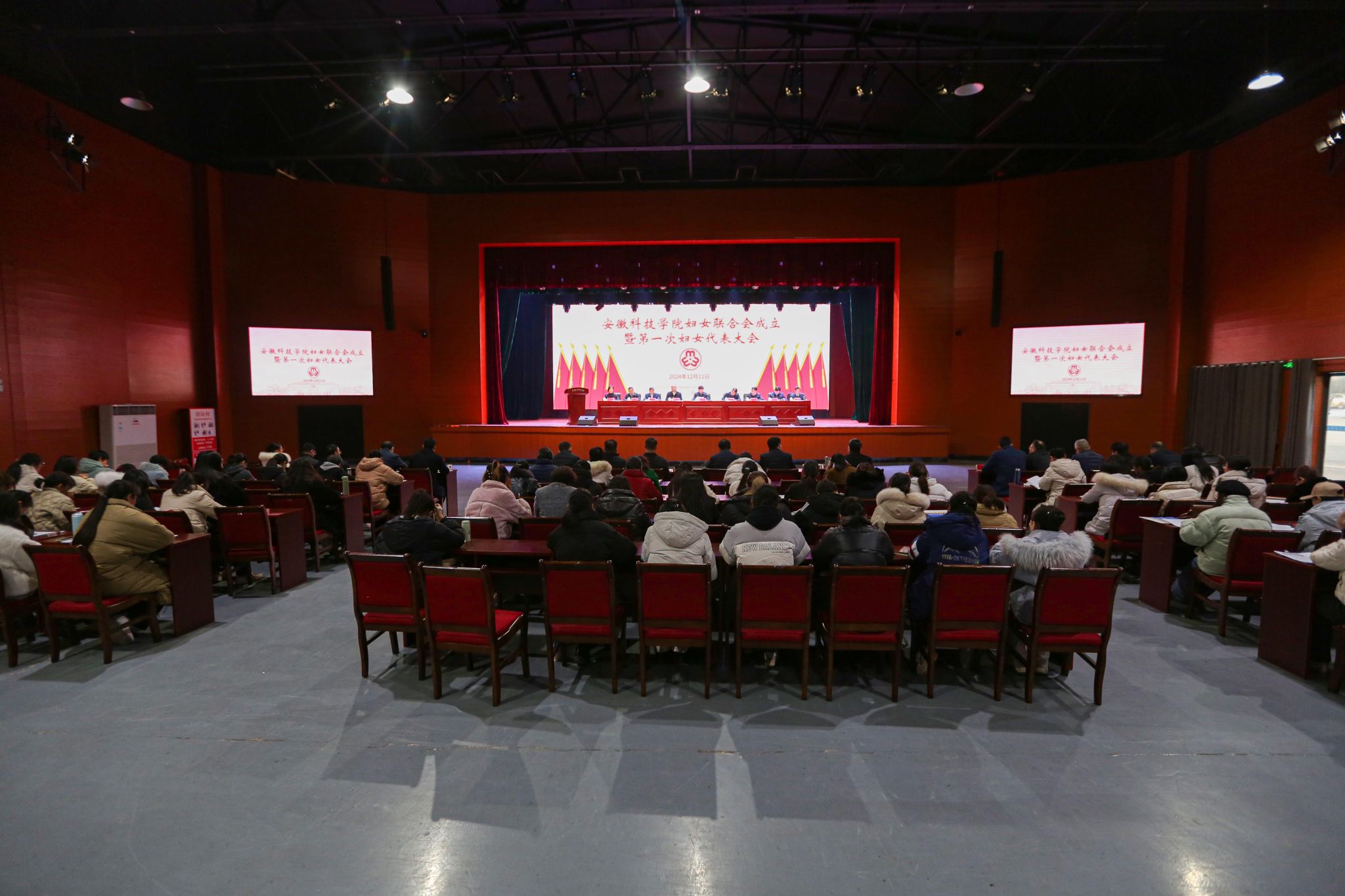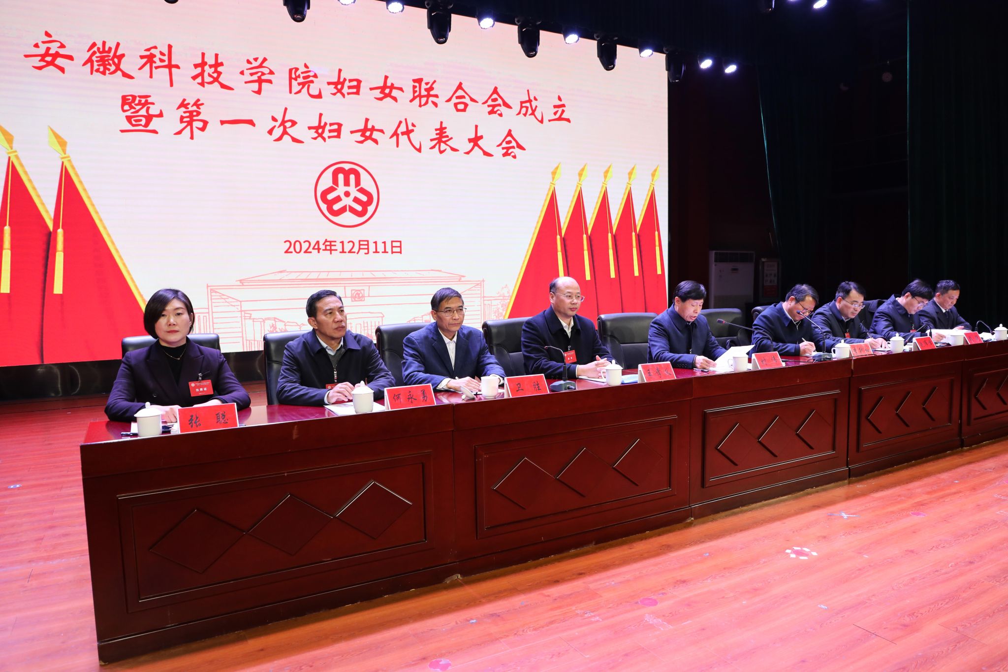 12月11日下午,学校妇女联合会成立暨第一次妇女代表大会在凤阳校区大学生活动中心胜利召开。党委书记时伟,党委副书记、院长李升和,党委委员、副院长王孝义,党委委员、副院长赵伟峰,党委委员、机关党委书记卫胜,党委委员、组织部部长钱锐,党委委员、宣传(统战)部部长何永勇,工会主席汪洋出席会议并在主席台就座。大会由李升和主持。