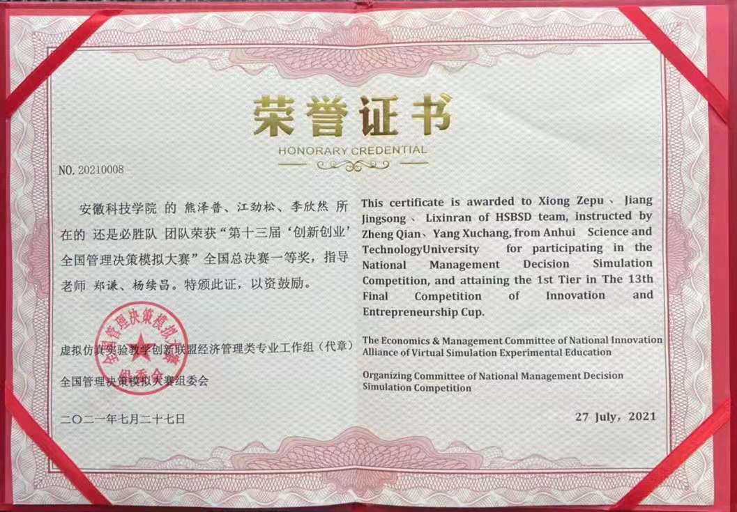 由开云线上官网_开云(中国)管理学院物流管理192班熊泽普、质量管理工程专业191班江劲松、质量管理工程202班李欣然3位同学组成的“还是必胜队”历经校赛、全国大区赛及全国半决赛的层层选拔,成功晋级全国总决赛,与来自全国96所高校的代表队同台竞技,机智勇敢,奋力拼搏,再次斩获全国总决赛一等奖的好成绩,再次为学校赢得了荣誉。