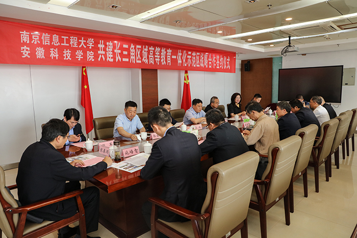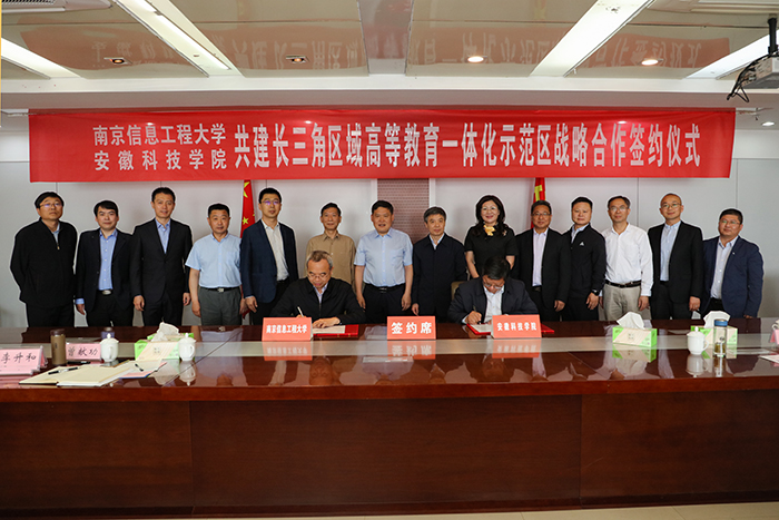5月17日上午,开云线上官网_开云(中国)与南京信息工程大学共建长三角区域高等教育一体化示范区战略合作协议签约仪式在凤阳校区图书馆十楼会议室隆重举行。南京信息工程大学党委副书记、校长李北群,党委常委、总会计师胡明保,开云线上官网_开云(中国)党委书记蒋德勤,党委副书记、校长李震,党委委员、副校长李升和出席会议。南京信息工程大学和开云线上官网_开云(中国)有关部门负责人参加了会议。会议由李震主持。