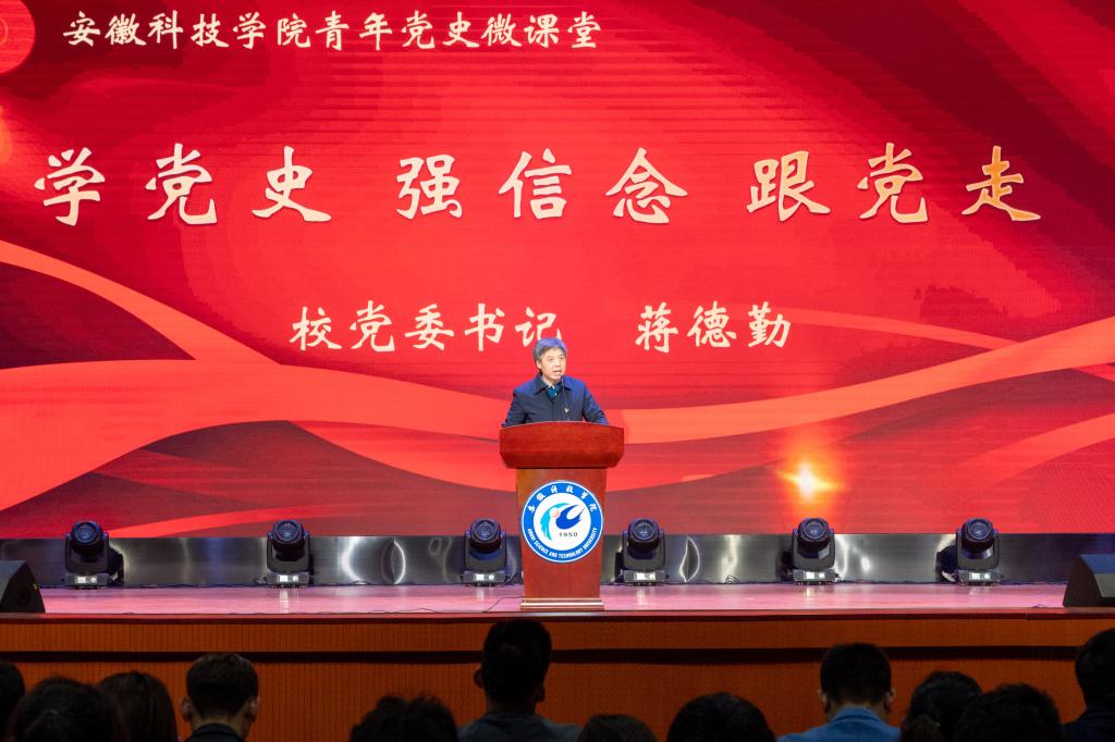 蒋德勤以“学党史、强信念、跟党走”为题为团员青年讲主题微团课。蒋德勤指出,共青团是党的助手和后备军,团学组织和团员青年要深刻领会开展党史学习教育的重大意义,自觉以习近平新时代中国特色社会主义思想武装头脑,立大志、明大德、成大才、担大任,以优异成绩迎接建党100周年。蒋德勤从五个方面为团员青年回溯党的光辉历史和伟大成就,并提出了殷殷期望。一是了解党的光辉历史,坚定对党的信任,通过为团员青年分析中国共产党成立以来不同历史时期的特点、任务和成就,希望青年学子做到知史爱党、知史爱国。二是感悟党的初心使命,坚定理想信念,指出信仰和旗帜是初心的首要内涵,希望团员青年对共产主义远大理想和社会主义共同理想坚定信仰、忠实实践。三是领会党的创新理论,坚定“四个自信”,通过阐释中国共产党为什么能、马克思主义为什么行、中国特色社会主义为什么好,勉励全校团员青年不断增强历史定力,增强做中国人的志气、骨气、底气。四是体认党的精神谱系,汲取开拓前进的勇气和力量,从党的百年非凡历程中以及从革命烈士、英雄人物、先进模范身上所形成的伟大精神谱系中汲取丰厚的养料,洗礼思想、奋勇前行。五是传承党的红色基因,堪当民族复兴大任,希望团员青年积极投身新时代的伟大征程,勇担世纪重托,勤奋学习、立志成才,争做社会主义事业建设者和接班人。
