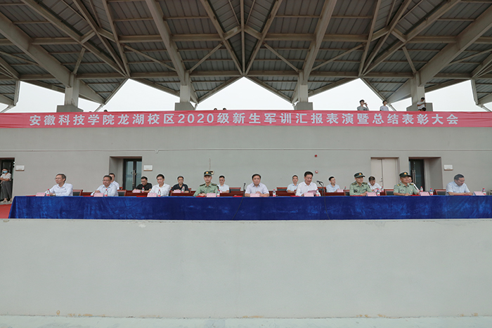 9月29日上午,开云线上官网_开云(中国)龙湖校区2020级新生军训汇报表演暨总结表彰大会在龙湖校区举行。校党委副书记韦文联,党委委员、副校长黄友锐,陆军装甲兵学院蚌埠校区教练勤务营修理连指导员高亚军,陆军装甲兵学院蚌埠校区战术系教员李为贵,陆军装甲兵学院蚌埠校区教练勤务营二级军士长、龙湖校区军训团团长牟江伟等出席大会并在主席台前排就座。大会由黄友锐主持。