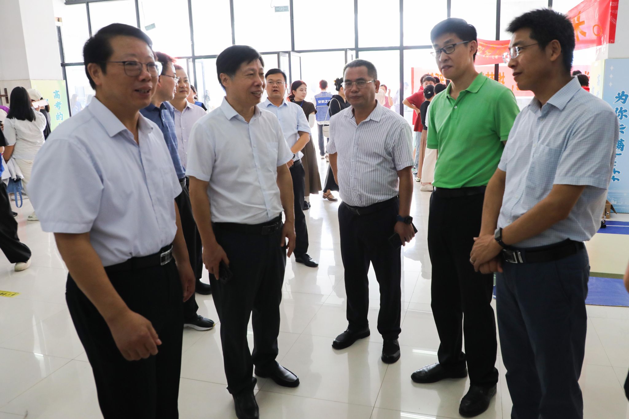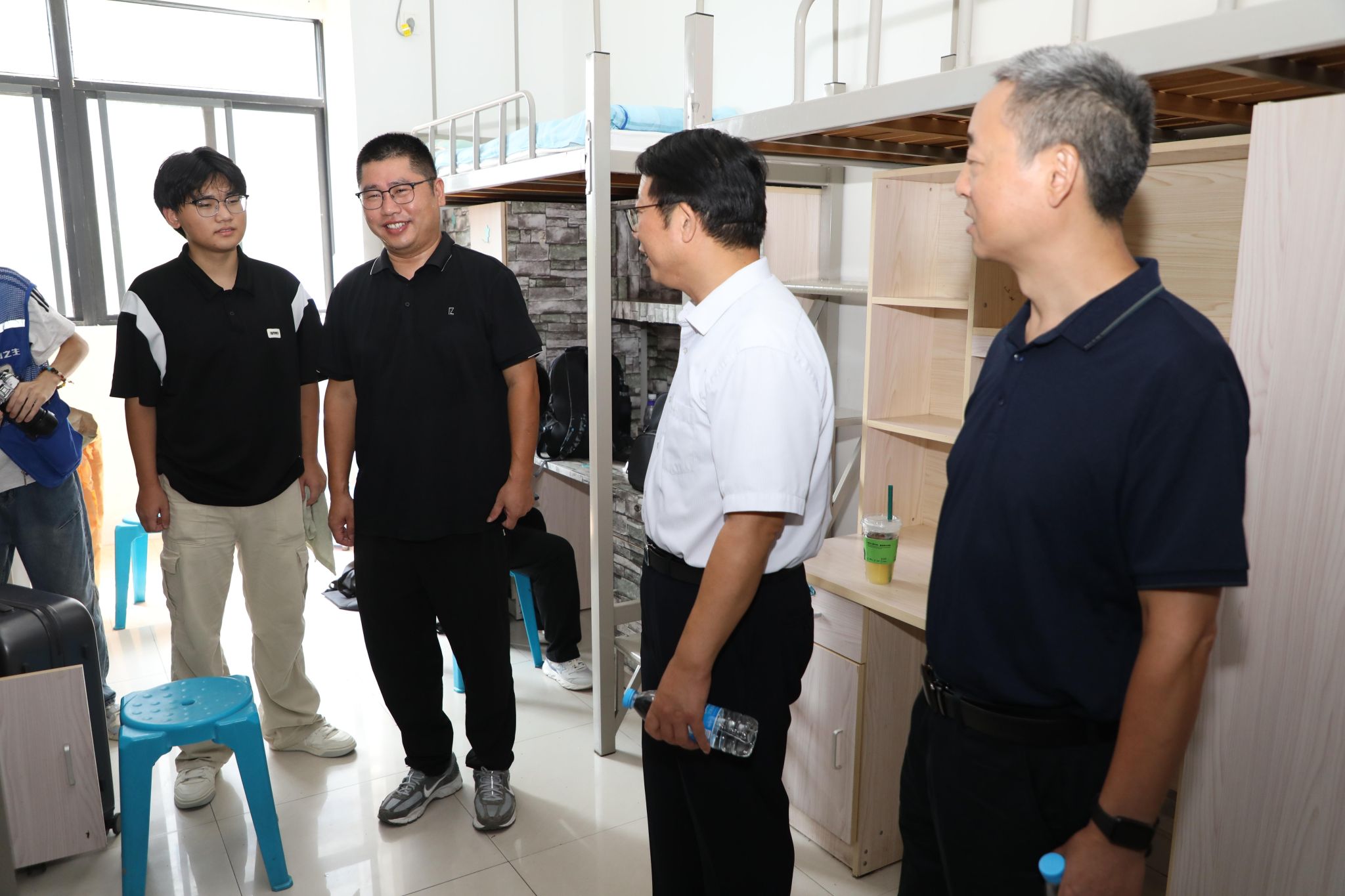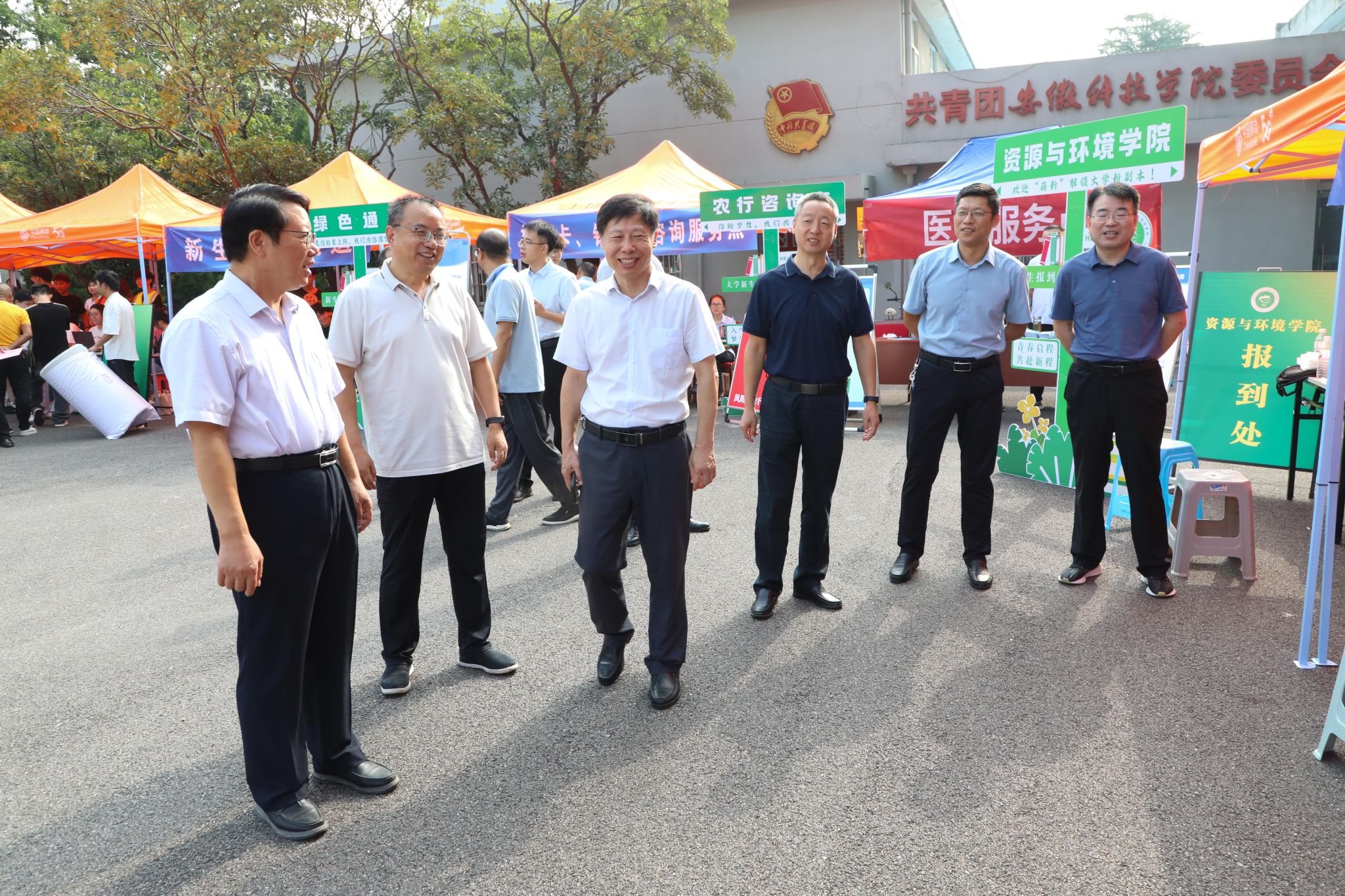 校党委书记时伟,党委副书记、院长李升和,党委委员、副院长赵伟峰,党委委员、纪委书记、监察专员彭庆刚,党委委员、副院长方鸣分赴两校区迎新现场,走访各服务点、学生宿舍和食堂,详细了解迎新进展,慰问一线工作人员和志愿者,并与新生及家长亲切交谈,鼓励新同学尽快融入校园生活,开启人生新阶段。