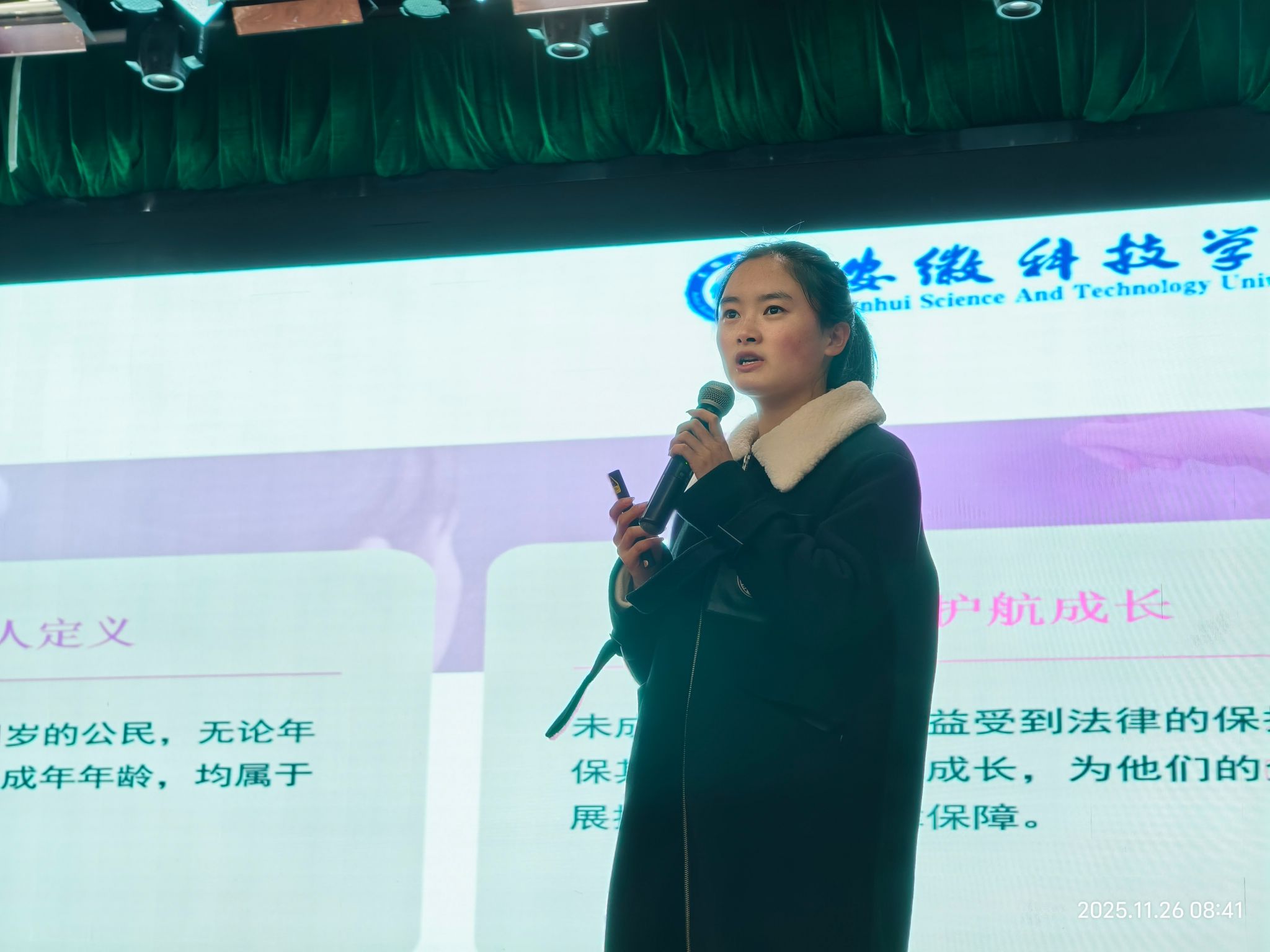本次活动由人文学院团委副书记焦雪松带队,6名师生志愿者参与。活动中,赵丹丹、陆思语两位同学担任主讲,聚焦新修订的《中华人民共和国未成年人保护法》中确立的“六大保护”体系,围绕家庭、学校、社会、网络、政府和司法保护,结合贴近学生生活的真实案例,生动讲解了法律知识,重点阐释了新增的“网络保护”“政府保护”等条款内容。