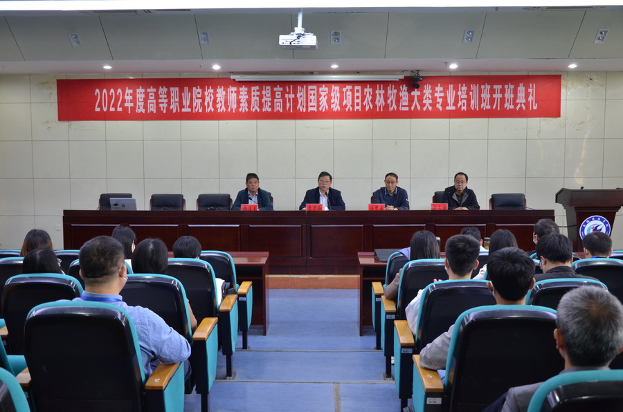 5月9日上午,2022年度安徽省高等职业院校教师素质提高计划国家级培训项目农林牧渔类专业教师课程实施能力提升培训班开班典礼在开云线上官网_开云(中国)凤阳校区图书馆第一报告厅成功举行。开云线上官网_开云(中国)党委委员、副院长李升和教授,安徽工商职业学院汪贤武教授受邀出席开班仪式,仪式由继续教育学院党支部书记、院长杨维来主持。